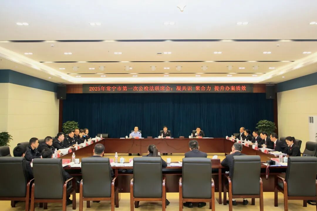 4月10日,常宁市人民法院、市人民检察院及市公安局联合召开2025年度公检法联席会。会议由市检察院党组书记、检察长欧阳会昌主持,市法院党组书记、院长李坚,市公安局党委副书记、政委贺涛涛出席会议并讲话,公检法各条线相关工作人员参加。会上,市检察院党组副书记、副检察长周亦芬通报了刑事“挂案”清理专项工作情况以及2025年的工作安排;市检察院副检察长张芸通报了近三年来执法办案中存在的突出问题;第一检察部主任向伟香部署2025年侦查监督与协作配合办公室主要工作并解读了《衡阳市人民检察院 衡阳市公安局贯彻两高两部〈关于办理醉酒危险驾驶刑事案件的意见〉有关问题的联席会议纪要》;第二检察部主任蒋秋田解读了湖南省高级人民法院、湖南省人民检察院、湖南省公安厅、湖南省司法厅联合制定的《轻微刑事案件快速办理机制实施办法(试行)》以及衡阳市中级人民法院、衡阳市人民检察院、衡阳市公安局、衡阳市司法局联合制定的《关于轻微刑事案件适用速裁程序工作规定》。与会人员立足各自的工作职能,紧密结合办案实际,针对上述五个议题,以问题导向为切口,聚焦办案中存在的重点、难点,围绕案件办理过程中的证据收集与认定、材料的移送、立案标准等环节交换工作意见并达成共识,形成了具有可操作性的具体措施,为后续工作的顺利推进奠定了坚实基础。贺涛涛指出,一是要在诉讼活动中主动作为。聚焦刑事案件挂案存在的突出问题,优化工作结构,调整工作方向,明确工作目标。二是要在法律理解中勤学苦练。秉持勤学不辍、苦练不止的精神,不断夯实专业根基,推动执法办案向纵深拓展,促使执法理念实现质的飞跃。三是要在执法过程中坚守底线。将公正司法作为执法活动的根本准则,把程序合法视为执法行为的刚性要求,坚决扛牢维护安全稳定的神圣职责。李坚表示,一是要建立好工作机制。充分发挥各自职能优势,相互紧密配合,对重大案件定期进行沟通、会商。二是要重点提升两种能力。一是政治能力,切实增强政治敏感性,精准把握政治方向、敏锐洞察政治形势。二是解决实际问题的能力,切实增强释法说理、处理矛盾等方面的能力。三是要办好三类重点案件。办好重大恶性案件,以“零容忍”态度依法严惩,确保量刑精准、罚当其罪,形成强力震慑效应;办好重点关注案件,强化侦审协同,摧毁组织链条,铲除犯罪土壤;办好重点群体性案件,建立“一案一档”动态监测机制预判风险、精准施策,确保平稳处置。欧阳会昌强调,一是要提高思想认识,深化公检法协作的重大意义。通过加强协作配合,形成打击犯罪的强大合力,充分发挥各自的职能优势,化解社会矛盾纠纷,为经济社会发展创造良好的社会环境。二是要聚焦问题导向,系统破解刑事诉讼实践中的难点堵点。明确公、检、法三机关职责定位,深化“以审判为中心”的诉讼理念。公安机关要强化证据意识,检察机关要严把审查起诉关,审判机关要坚持以庭审为中心,真正实现程序公正和实体公正的有机统一。三是要强化协作配合,凝聚刑事司法协同发展的强大合力。以“规范化监督、高效化协作”为轴心,依托侦协办,持续深化协作配合,让侦查监督与协作配合机制落地生根,提升办案质效。四是要注重能力提升,深化刑事司法工作队伍建设素能。联合开展业务培训,提升公检法干警办案能力素质,持续为公检法干警“充电赋能”,切实增强其专业素养与实战能力,全力锻造忠诚干净担当的公检法铁军。与会单位纷纷表示,将以此次会议为起点,以坚定的决心和务实的行动,确保每项措施落地有声,切实提升办案质效,为服务保障全市经济社会高质量发展作出新的更大贡献。