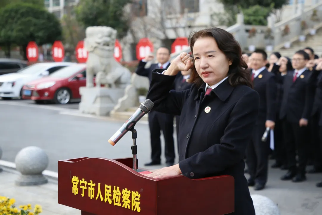 12月4日,常宁市人民检察院举行宪法宣誓仪式,让宪法精神浸润人心,让法治信仰落地生根。常宁市检察院党组书记、检察长欧阳会昌监誓,党组副书记、分管日常工作副检察长周亦芬领誓,全体检察人员参加宣誓。